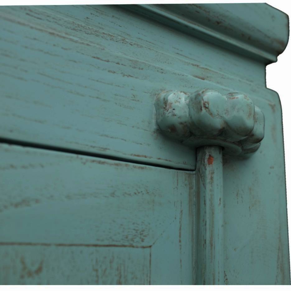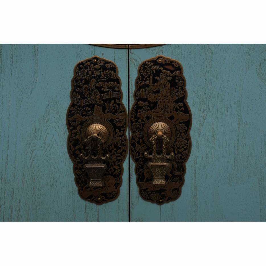 Item Name: Blue Chinese Wedding Cabinet w/engraved Copper Round Plate