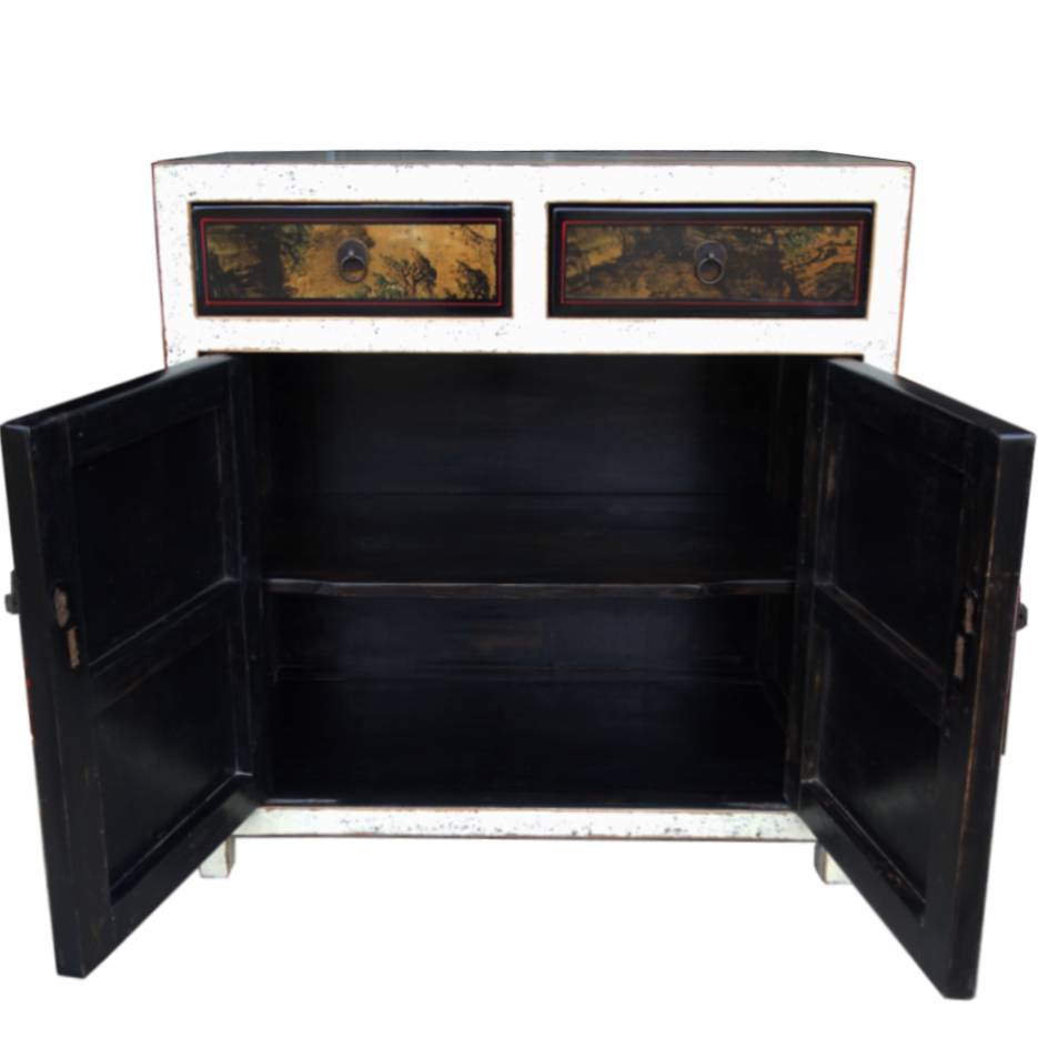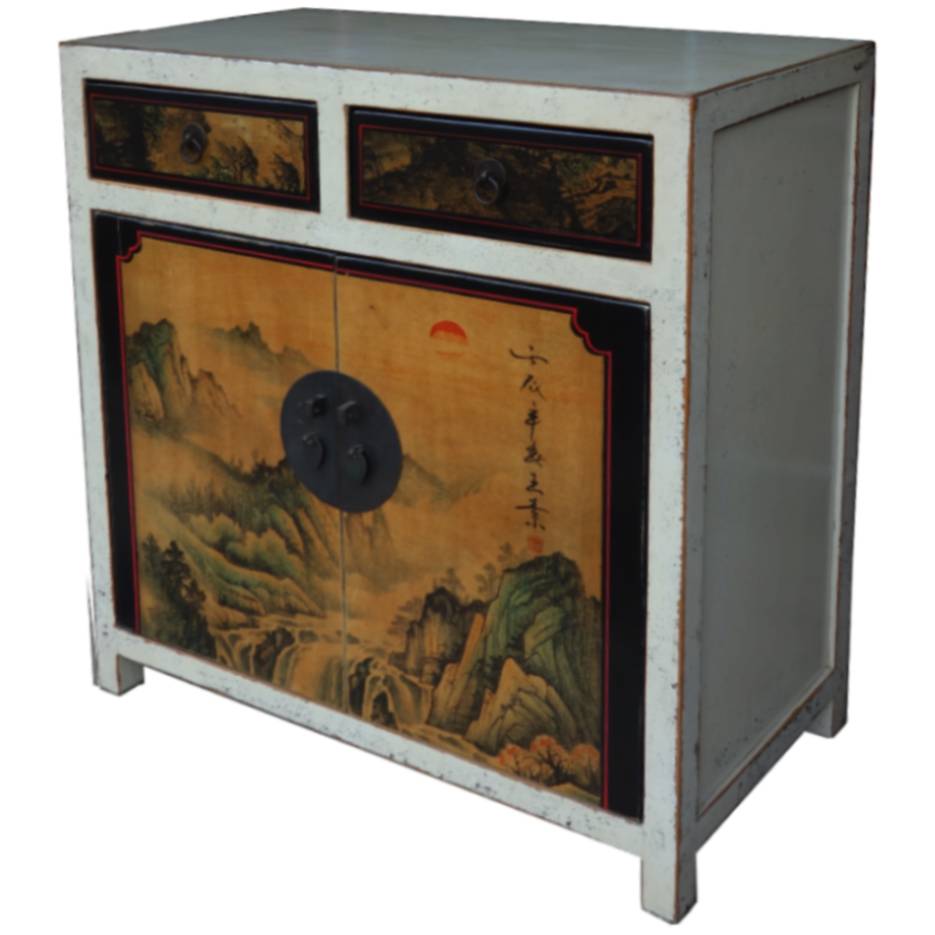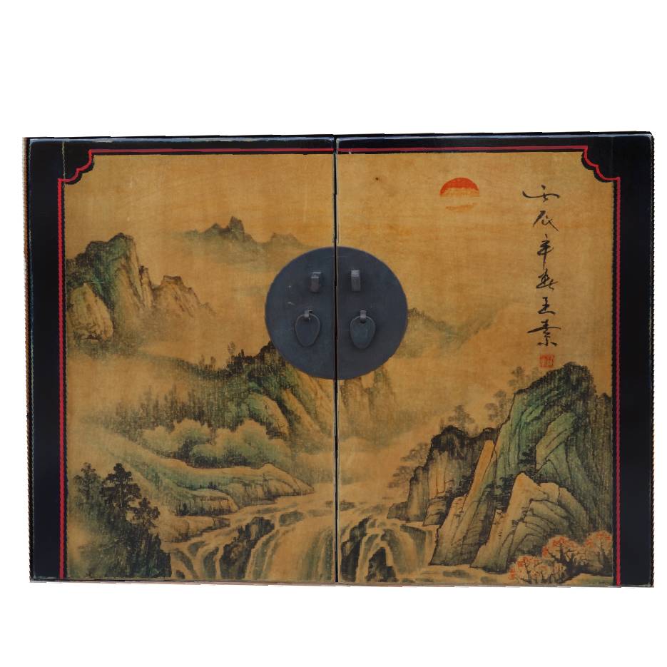 Item Name: Chinese Small Cabinet with Painted Mountain Scene