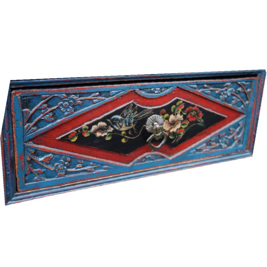 This Anique Five Draw Console Table featured its blue frame with beautifully carved drawers. Each drawer had different carvings of flora and birds in different shapes. It would be a beautiful entrance table of sofa table with storage.