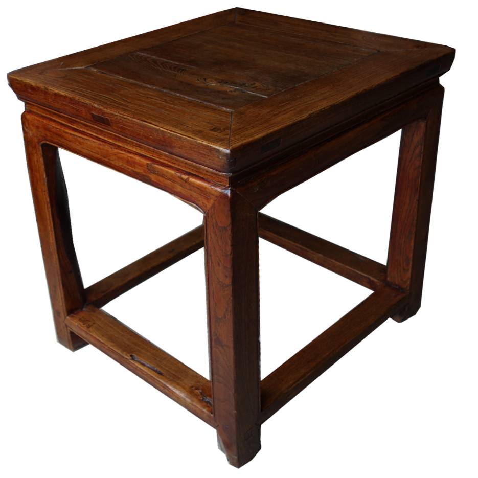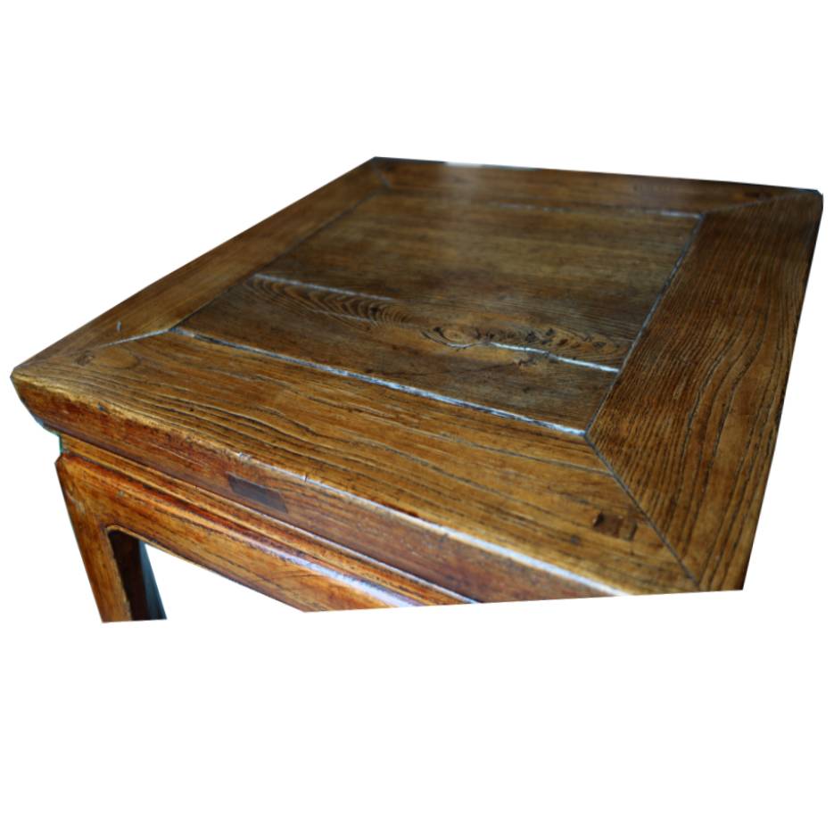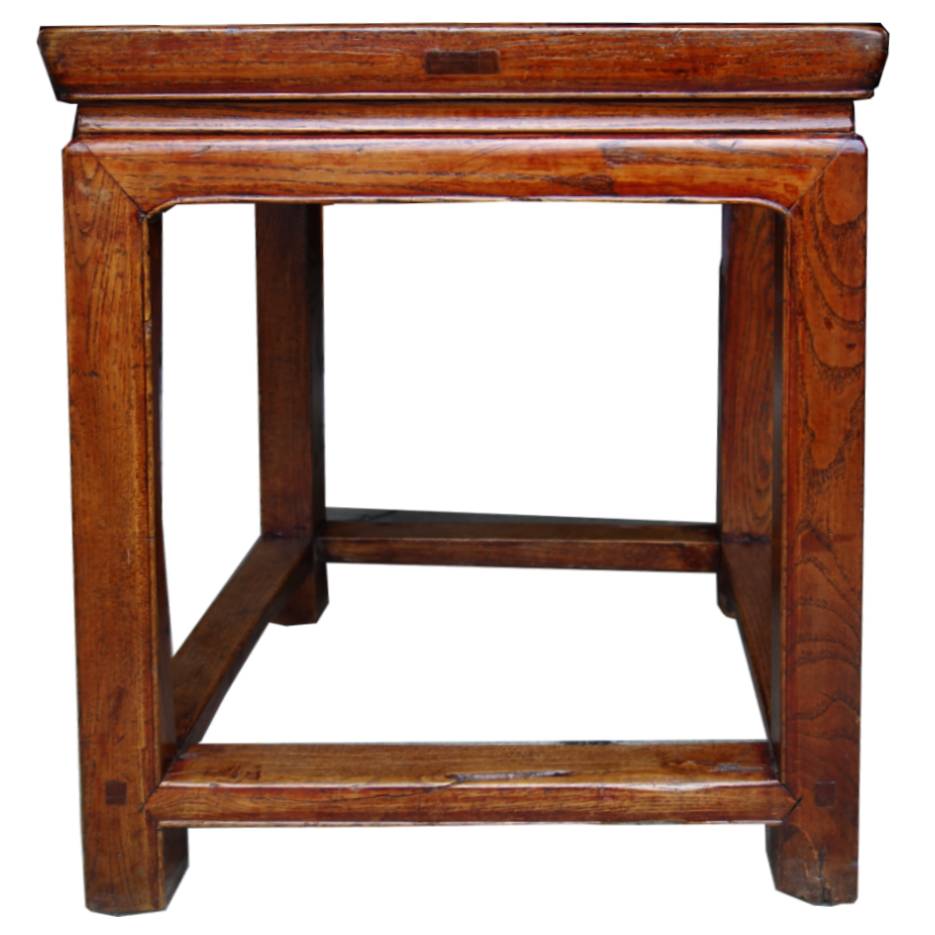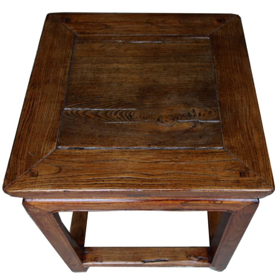 This antique elm square side table is a great side table. The sides of the able had some red patina remained while the red patina on top of the table had fainted with beautiful wood grain coming up.