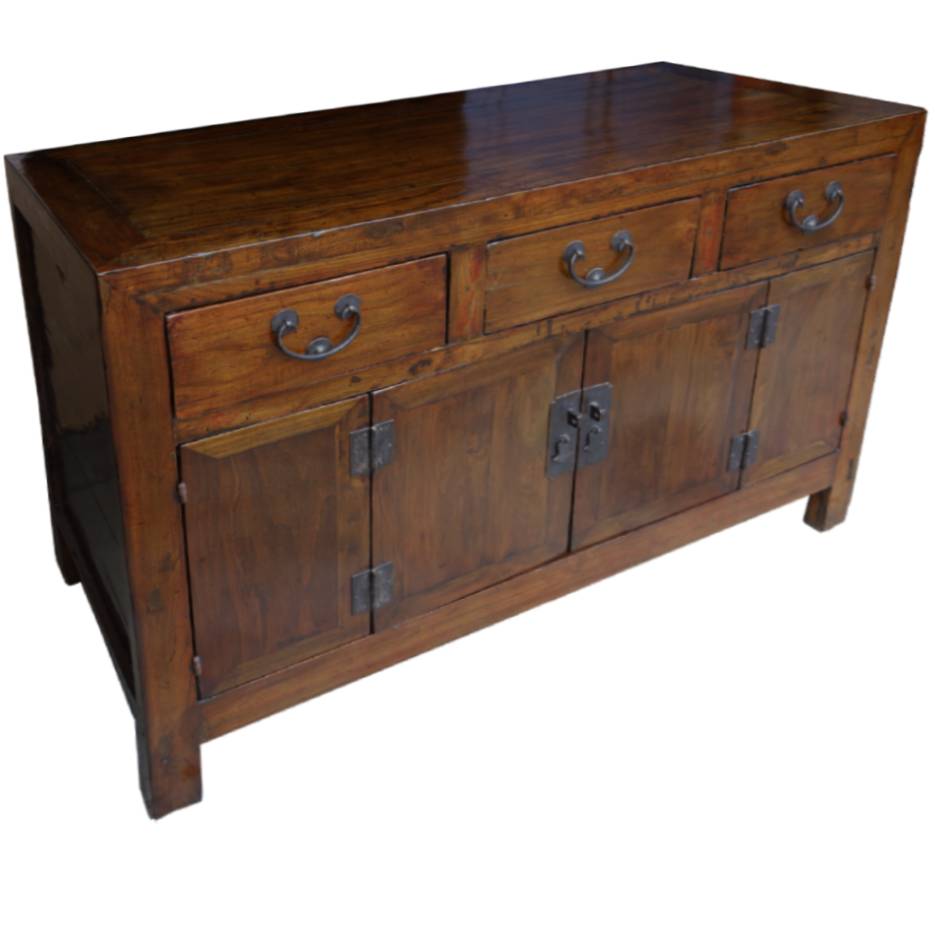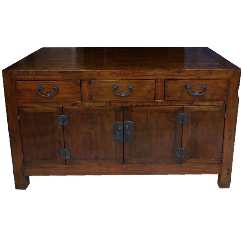 Item Name: Antique Chinese Solid Walnut Sideboard Three Drawers Four Doors