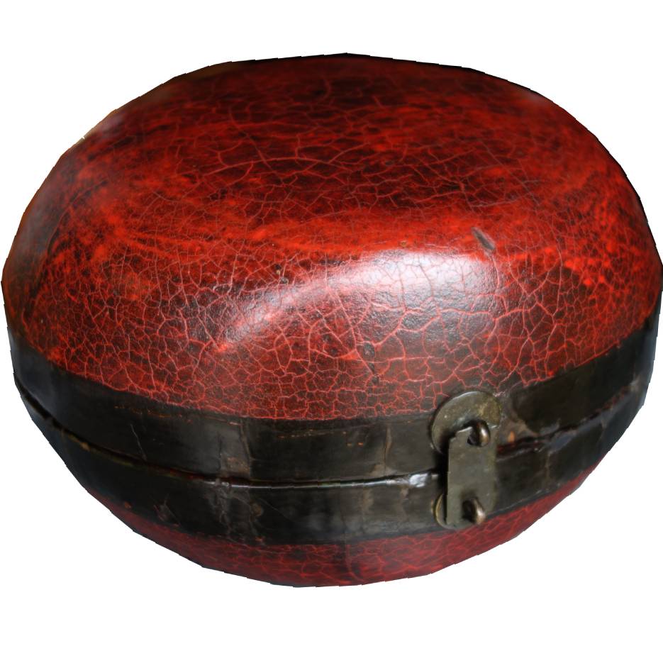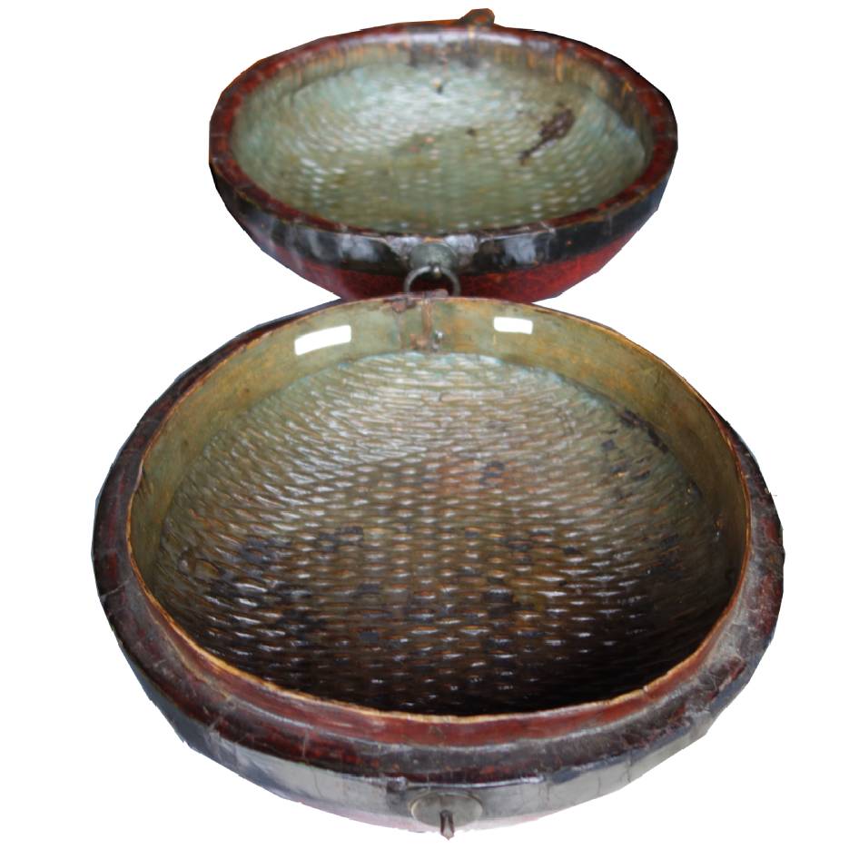 Item Name: Chinese Cane Food Container with Red Crackle patina