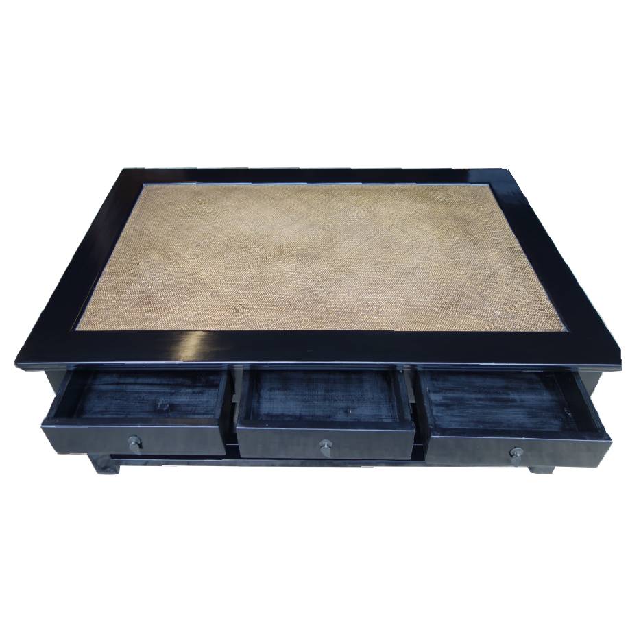 Item Name: Retangular Rattan Top Black Coffee Table w/Six Drawers