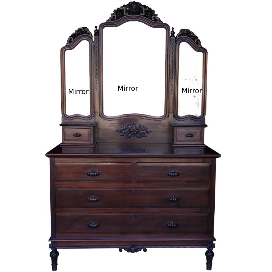 Item Name: Large Vintage Rosewood Dressing Cabinet w/Three Mirrors