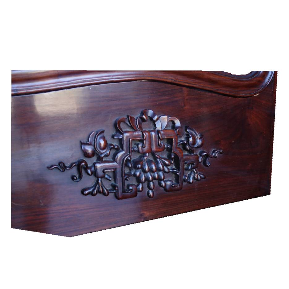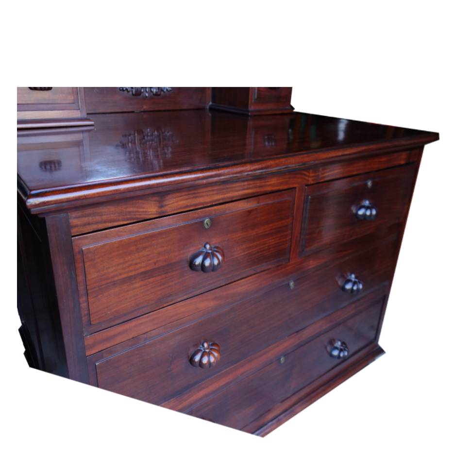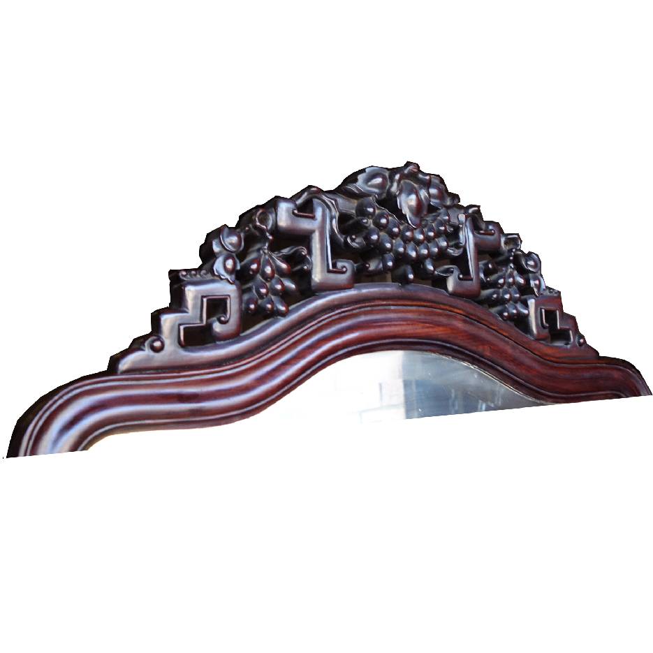 Elegant Chinese Rosewood dressing cabinet, featuring mixture of East and West design. It had three mirrors that the two side mirrors can be folded. It Also featured carvings on top of the mirrors and drawers. The drawers offer big spaces of storage. A refined piece showcasing the timeless craftsmanship.