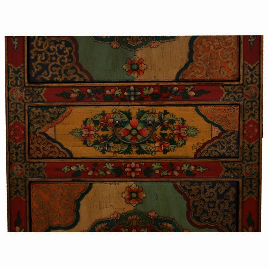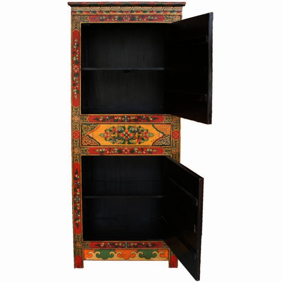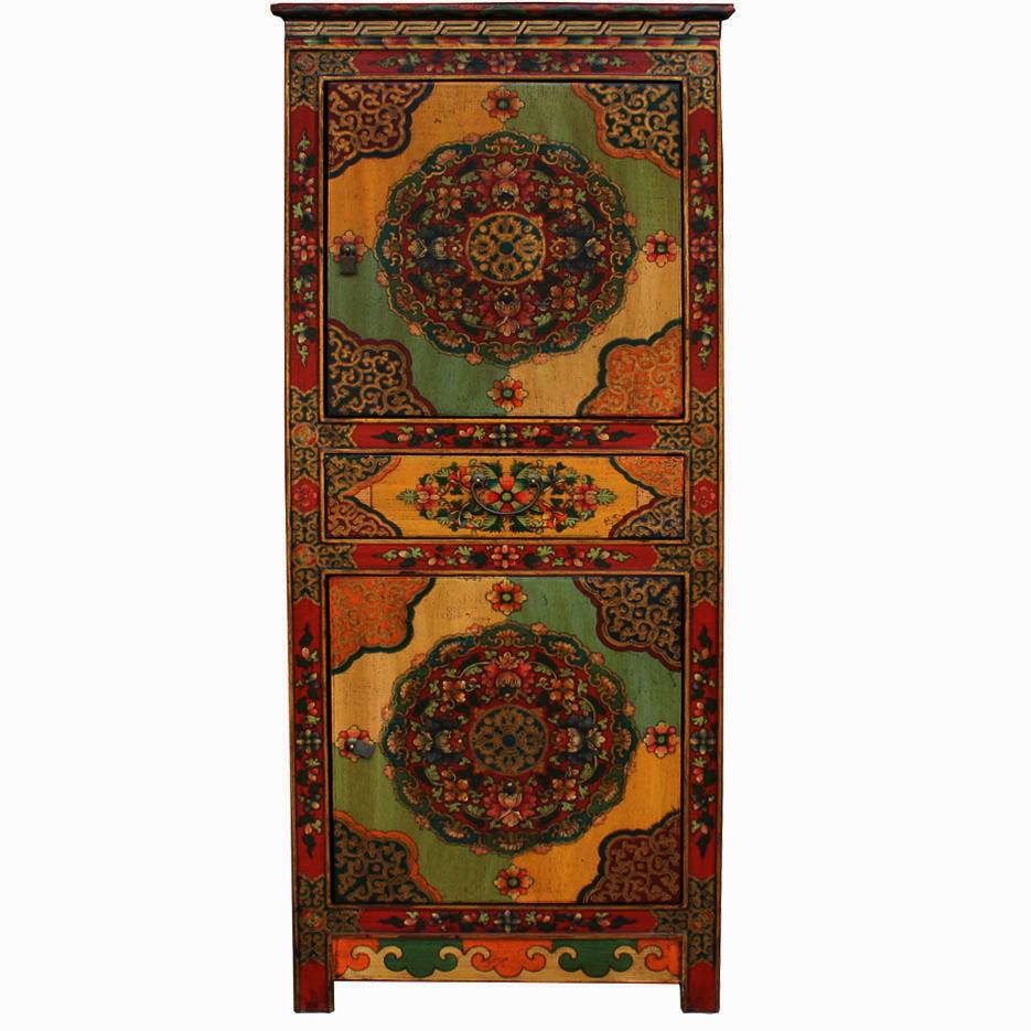 Item Name: Tibetan Tall Cabinet Flora Painting